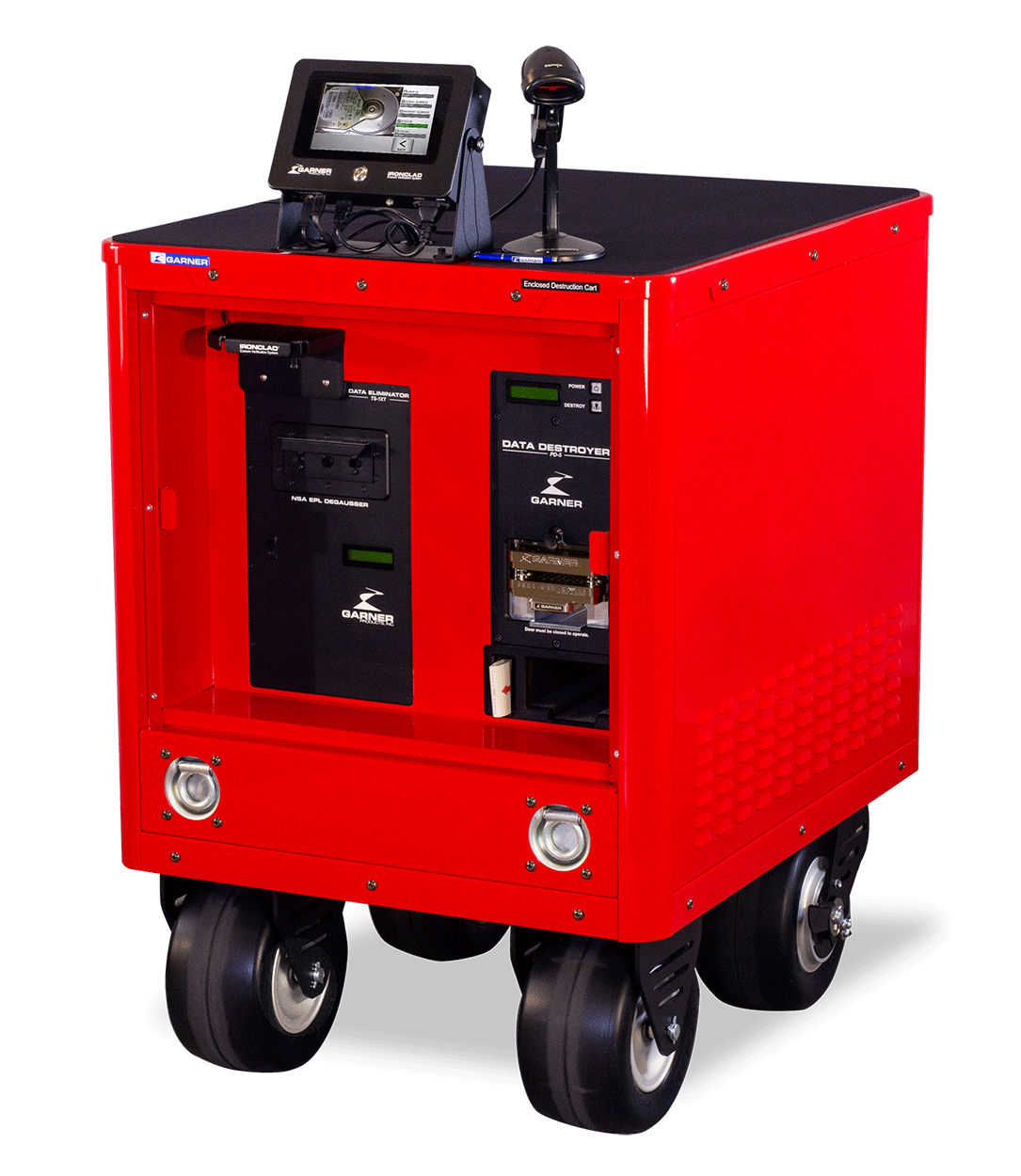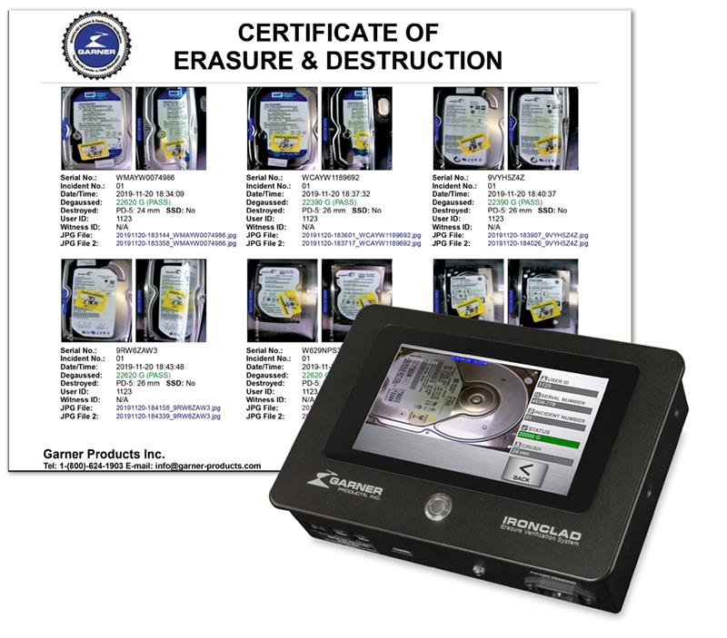 Garner's EDC-1XT5SSD IRONCLAD provides all the tools to effortlessly Degauss, Destroy, and Verify in‑house the sanitization of hard drives, tape, and solid-state media.