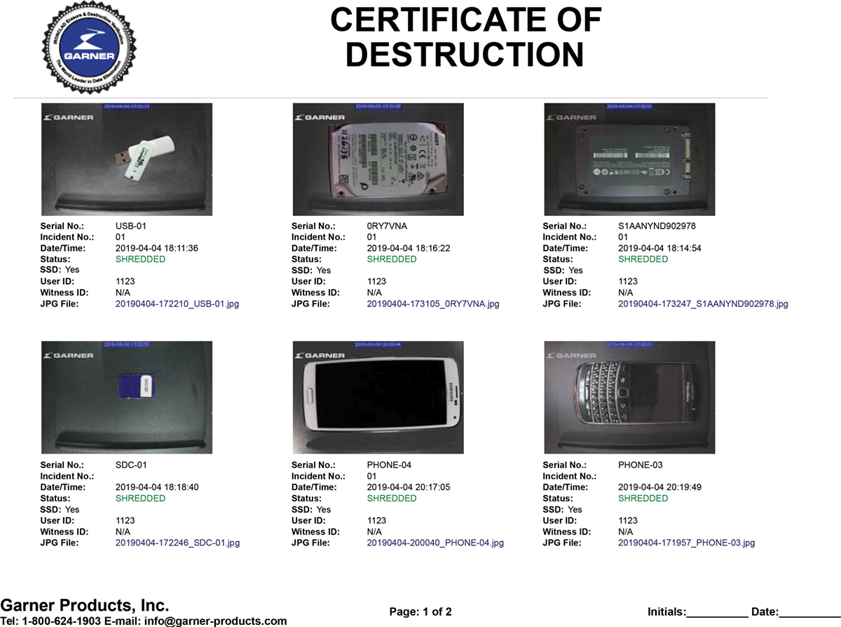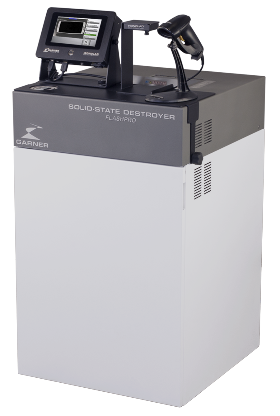 The FLASHPRO high-volume solid-state shredder is now IRONCLAD capable, only through Garner. Specifically designed to shred digital media in an office environment, IRONCLAD provides digital witness destruction verification by imaging the media before shredding and documenting the destroyed media for audit and archival purposes. The information is preserved in an exportable IRONCLAD Destruction Certificate.