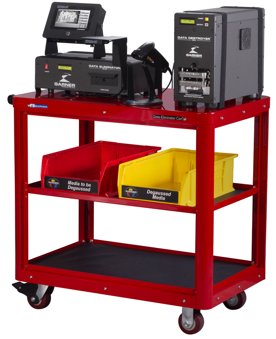 Your choice of destruction equipment securely mounts to a custom-designed cart creating a comprehensive mobile media sanitization solution.