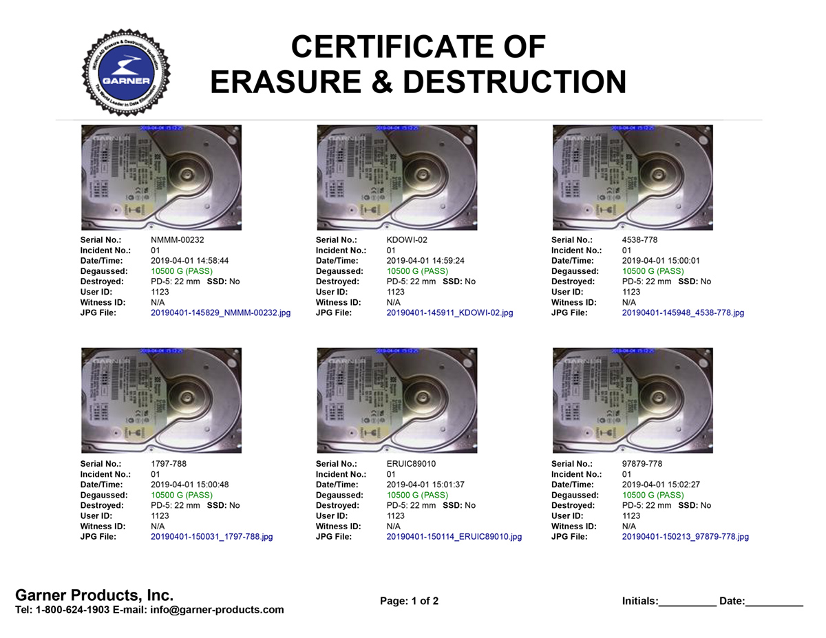 Garner Products, Inc., leads the data destruction industry in product safety by being the first and only U.S. hard drive degausser and destroyer manufacturer to earn certification of our products to UL, IEC, and CSA safety standards from a Nationally Recognized Testing Laboratory (NRTL).