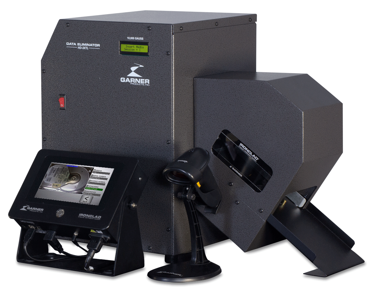 IRONCLAD Integrated Auditing System (option): Create the ultimate proof-of-erasure and destruction reports. Combine the HD-3XTL degausser with Garner’s exclusive IRONCLAD® Erasure Verification with JPG Image Capture System. IRONCLAD creates a Certificate of Erasure & Destruction Report by compiling user, media, and diagnostic data from the HD-3XTL degausser and the PD-5 hard drive destroyer for auditing purposes.