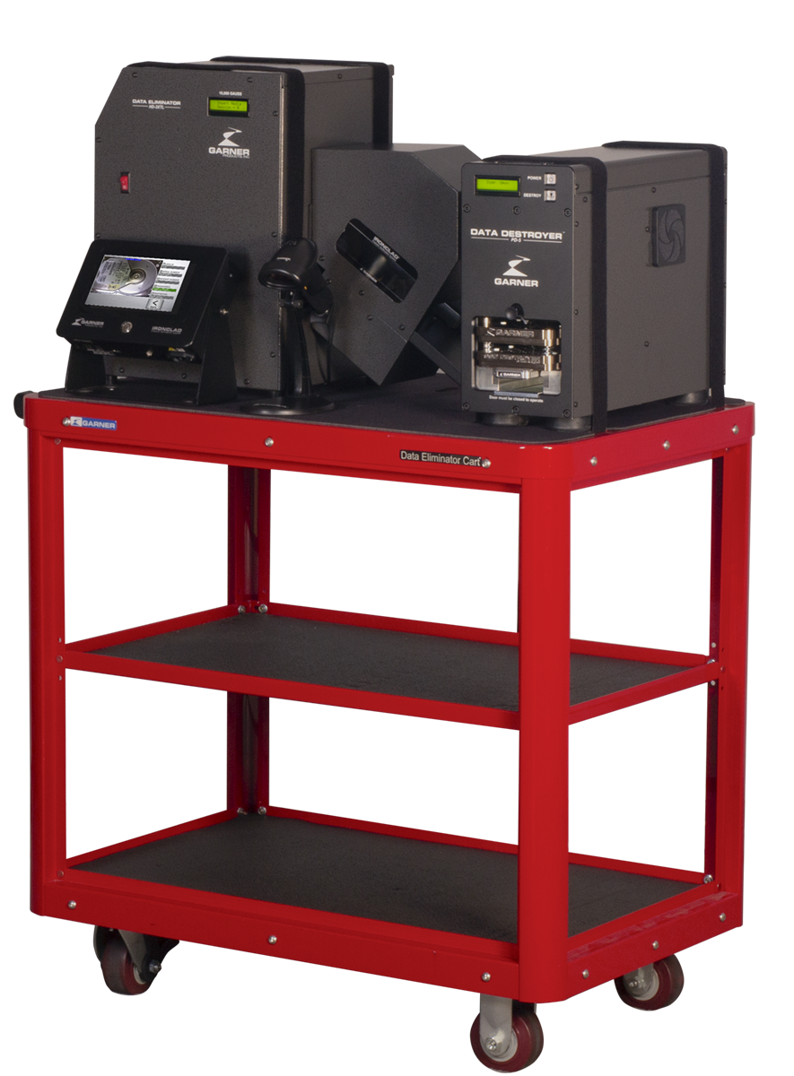 Your choice of destruction equipment securely mounts to the cart creating a comprehensive mobile media sanitization solution.
