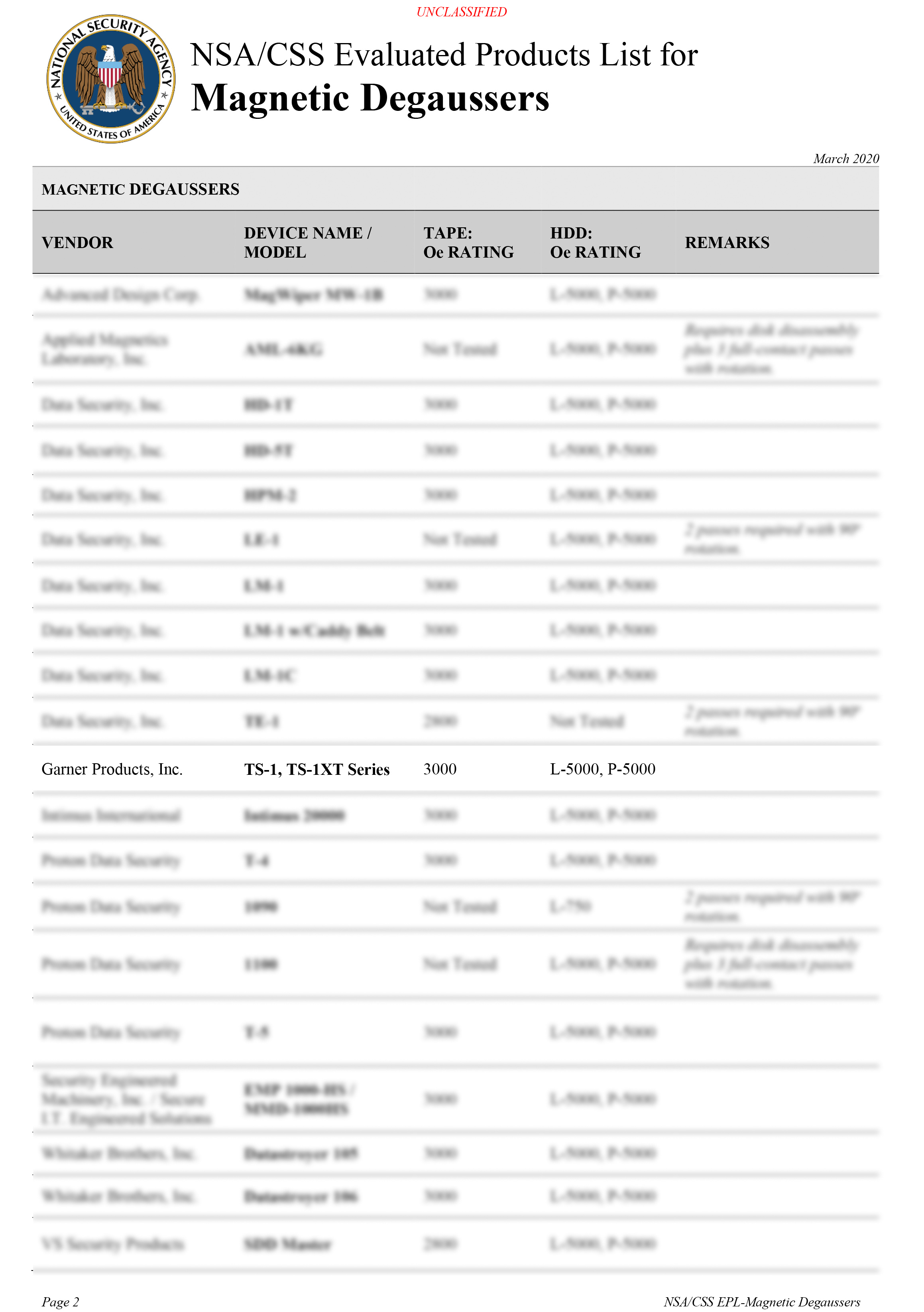 Effective 2021, new NSA hard drive sanitization standards to require both degaussing and physical destruction before the media is removed from its secure environment.