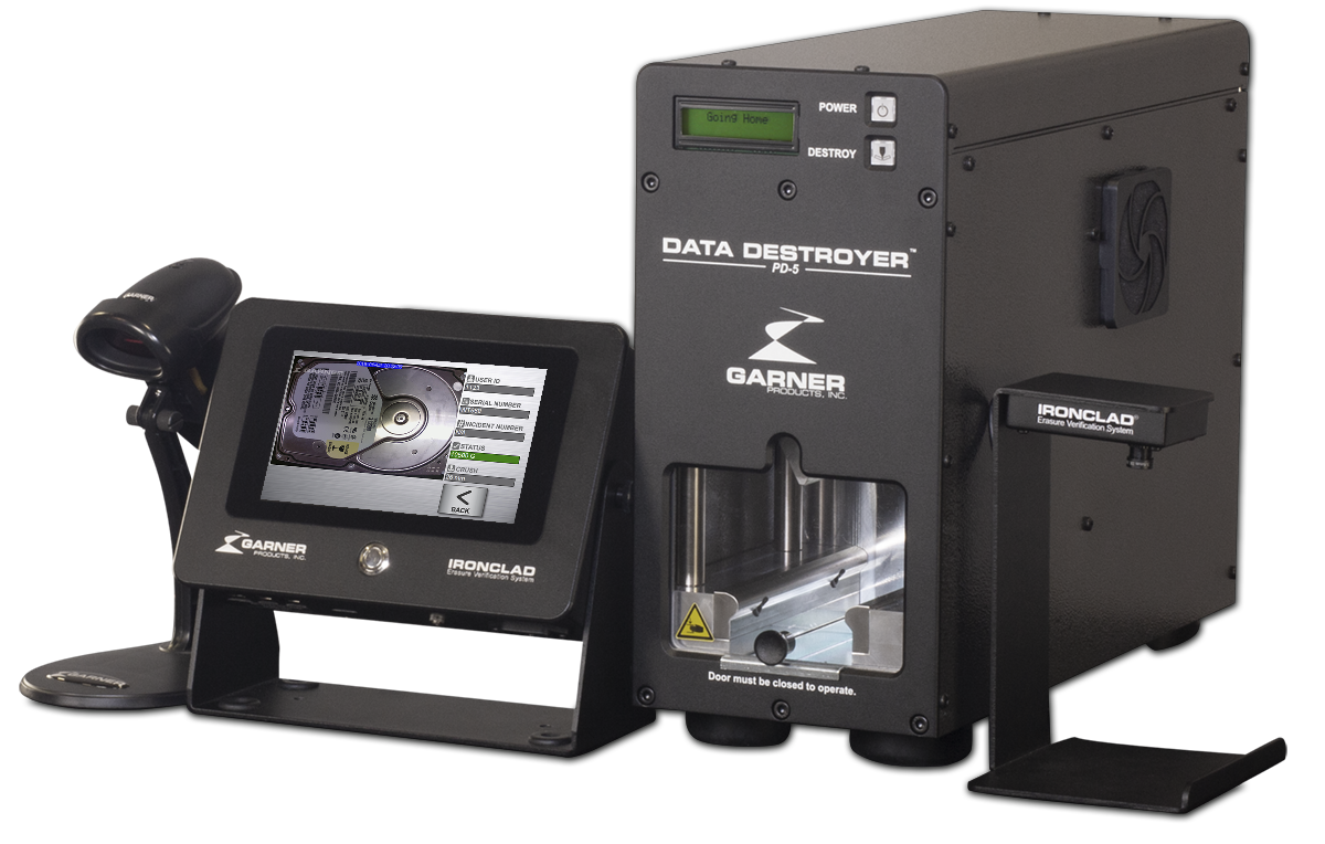 IRONCLAD Destruction Certificate (optional): Create the ultimate proof-of-destruction reports. Combine the PD-5 hard drive destroyer with Garner’s exclusive IRONCLAD® Destruction Verification with JPG Image Capture System. IRONCLAD creates a Certificate of Destruction Report by compiling user, media, and diagnostic data from the PD-5 hard drive destroyer for auditing and record-keeping purposes.