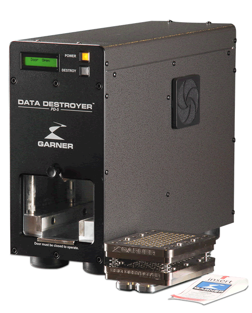 Meeting the NSA CSS Evaluated Products List requirement for Hard Disk Drive Destruction Services, the PD-5 operates as an NSA Listed Second Stage Hard Drive Destroyer when paired with Garner's NSA/CSS EPL-listed TS-1XT degausser.