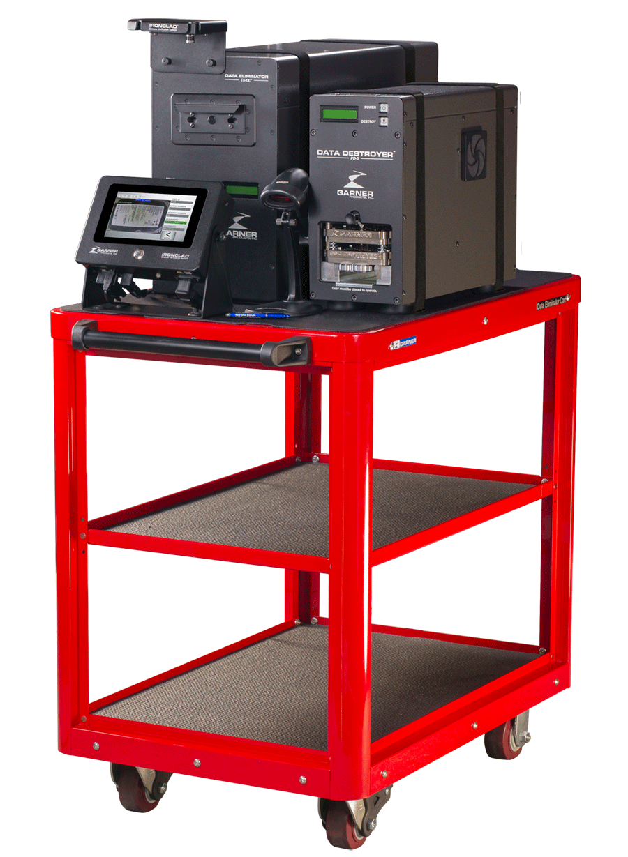 Mobilize your destruction equipment to move it within your facility or take it on the road. Your choice of destruction equipment securely mounts to the custom cart to create a fully equipped and mobile media sanitization solution.