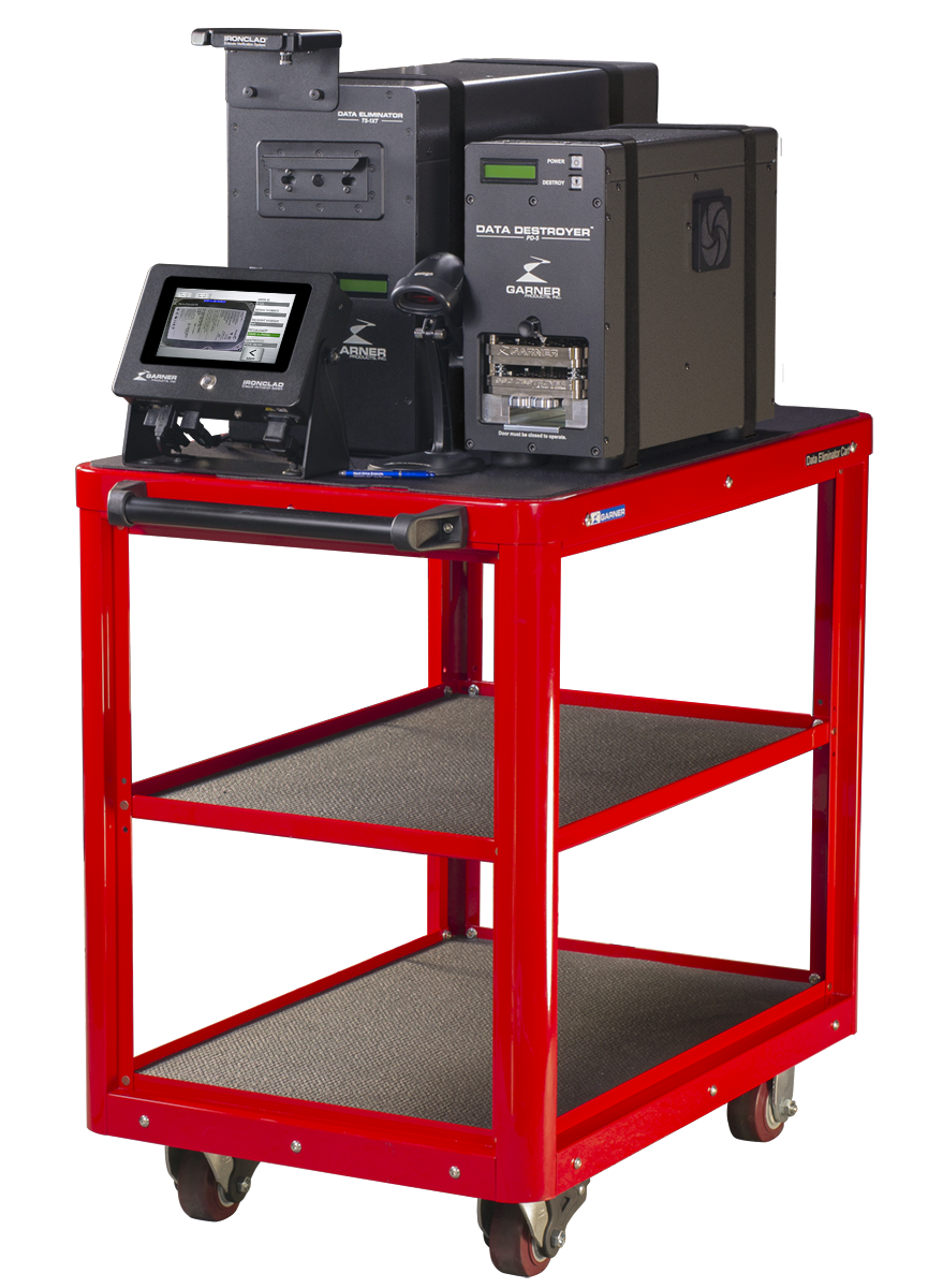 Your choice of destruction equipment securely mounts to the cart creating a comprehensive mobile media sanitization solution.