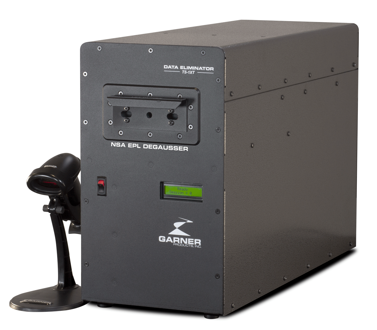 With a 20,000 gauss field, the TS-1XT NSA-EPL listed degausser completely erases all data on hard drives and tapes in under 15 seconds. The TS-1XT comes with a SCAN-1X scanner and software package voucher to create an audit-worthy media destruction report as you degauss.