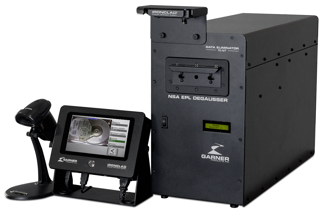 Combine the TS-1XT degausser with Garner’s exclusive IRONCLAD® Erasure Verification with JPG Image Capture System for complete, permanent, and verifiable data elimination. Only Garner provides the best audit trail and proof-of-erasure reports with JPG images of degaussed hard drives and a record of gauss field strength for each cycle.